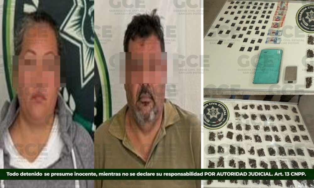 En Tamazunchale la Guardia Civil Estatal decomisó 129 dosis de estupefacientes y detuvo a Silverio “N” de 50 años y Ana “N” de...