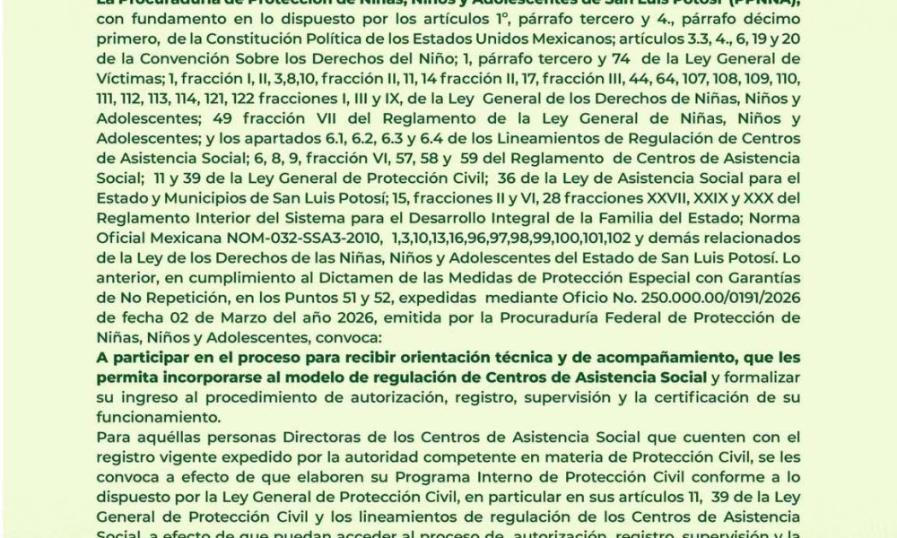 La convocatoria tiene como objetivo fortalecer la protección y garantizar entornos seguros para niñas, niños y adolescentes en acogimiento residencial