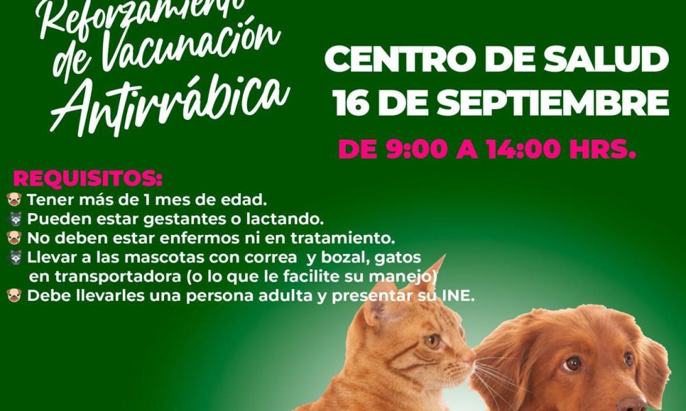La Secretaría de Salud instalará macro puntos de vacunación antirrábica gratuitos en coordinación con diversas instituciones y ayuntamientos, aplicando dosis del 1 al 12 de diciembre