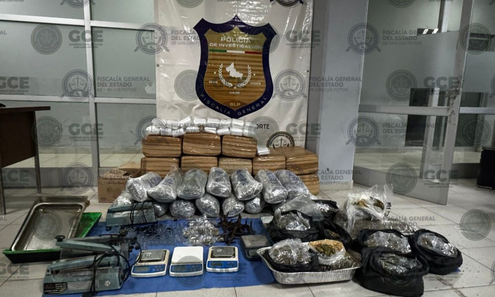 En Ciudad Valles, la GCE detuvo a dos personas y, posteriormente, en coordinación con la FGE, decomisó aproximadamente 154 kilogramos de marihuana y artefactos...