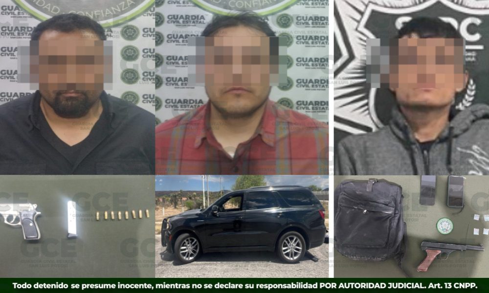 La GCE aseguró dos armas de fuego y detuvo a tres personas.