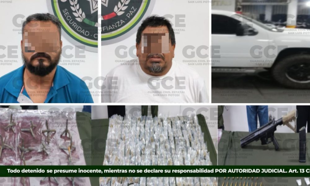 La Guardia Civil Estatal detuvo en Ciudad Valles a dos personas con más de 200 dosis de narcóticos, un arma de fuego y objetos ponchallantas