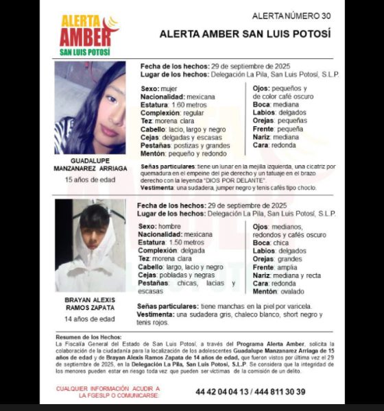 Activan Alerta Amber para localizar a dos adolescentes en SLP