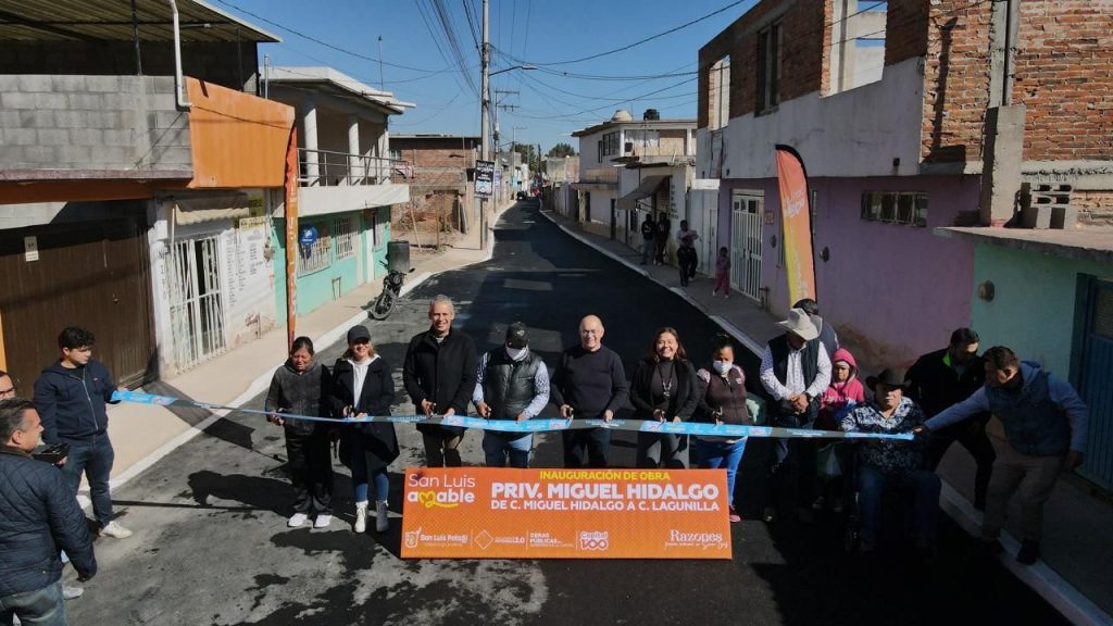 Al hacer entrega de la obra vial de la calle Privada Miguel Hidalgo, en la Delegación La Pila, el Presidente Municipal de San Luis Capital, Enrique Galindo Ceballos, señaló que esta vialidad de 2 mil 140 metros cuadrados, muestra el gran avance en el desarrollo de esta demarcación, ya que se trata de la décimo primera pavimentación realizada en La Pila durante la actual administración.