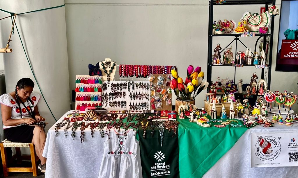 El titular de la dependencia, Jesús Salvador González Martínez, destacó que este escaparate permite visibilizar el talento de artesanas y artesanos pertenecientes a los pueblos Tének, Náhuatl, Xi’oi y Wixarika, provenientes de 11 municipios de las regiones Huasteca, Media y Centro. Con el acompañamiento de la Casa de las Artesanías del Estado se presentan piezas de nueve ramas artesanales y productos agroartesanales como café, mezcal, dulces y chocolates tradicionales, mostrando cómo el cambio que se vive y se siente también impacta en la cultura y la economía de las comunidades potosinas.