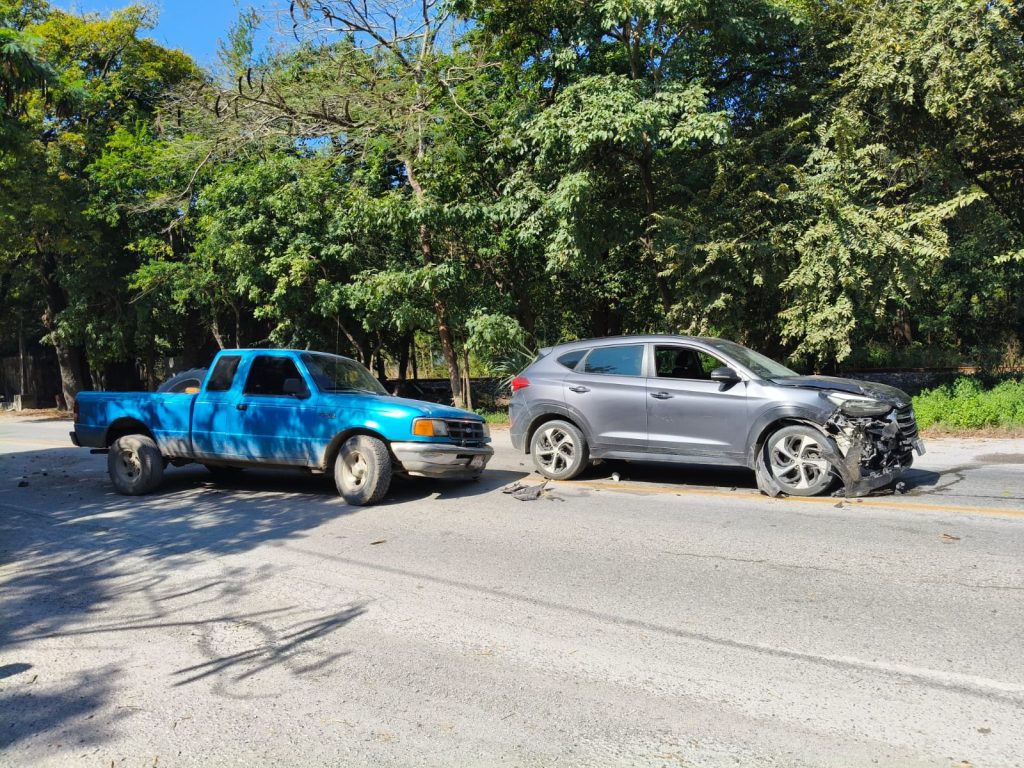 Un choque entre dos camionetas se registró este viernes alrededor del mediodía en el kilómetro 10 de la carretera libre Valles–Tampico, a la altura del ejido El Abra, dejando como saldo una mujer lesionada y daños materiales.