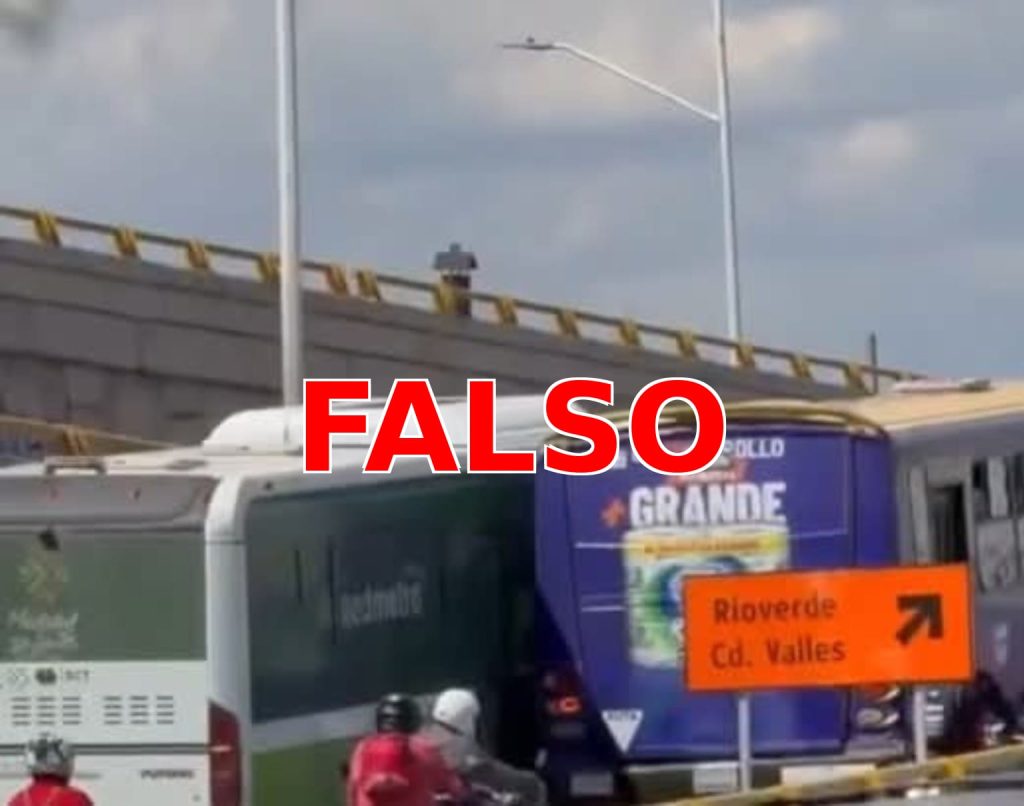 La Secretaría de Comunicaciones y Transportes (Sct) informó que es falsa la versión que circula en algunos medios y redes sociales sobre un supuesto choque entre una unidad de RedMetro y un camión de transporte urbano. La dependencia precisó que los hechos ocurrieron en la Línea 3 Circuito Potosí, en la intersección con avenida Industrias, debido a una unidad de transporte urbano detenida por una falla mecánica.