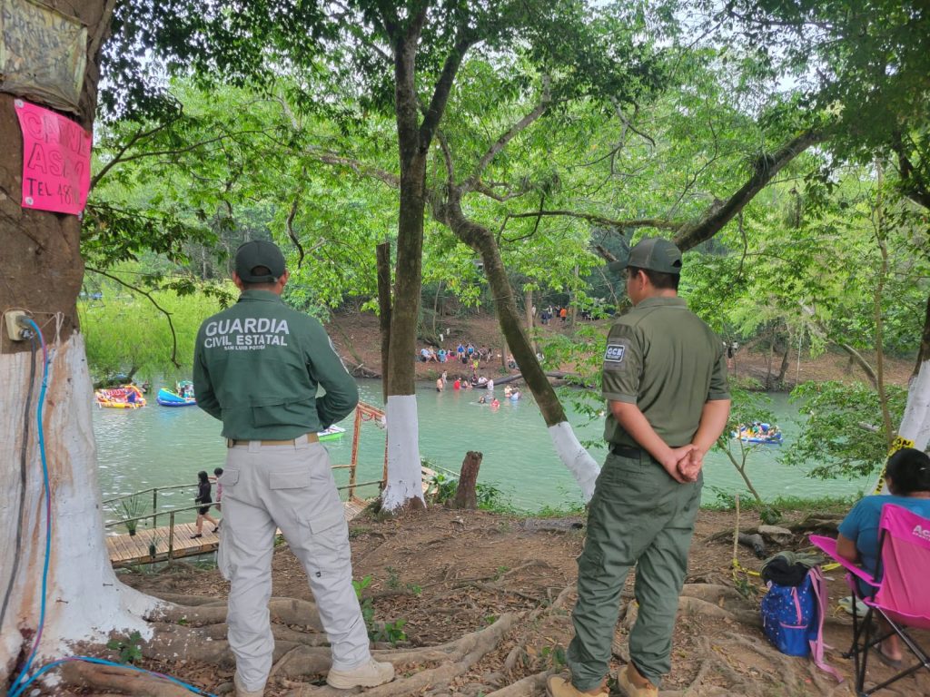 En puntos turísticos de alta afluencia como Cascadas de Micos y el paraje El Conejo, en Ciudad Valles, así como en Tambaque, Tanchachín, La Garita y La Morena, se desplegaron operativos a través de la Guardia Civil Estatal (GCE) dentro del dispositivo Semana Santa Segura 2026, lo que demuestra el cambio que se vive y se siente al garantizar entornos más seguros. De manera adicional, en El Naranjo se realizaron patrullajes en parajes como Minas Viejas, Playa Bruja, El Chalán, El Meco y El Salto, brindando recomendaciones preventivas a turistas sobre el uso de chalecos salvavidas y números de emergencia. El titular de la corporación, Jesús Juárez Hernández, destacó que estos operativos buscan garantizar una estancia segura, contribuyendo a la paz y el desarrollo turístico.