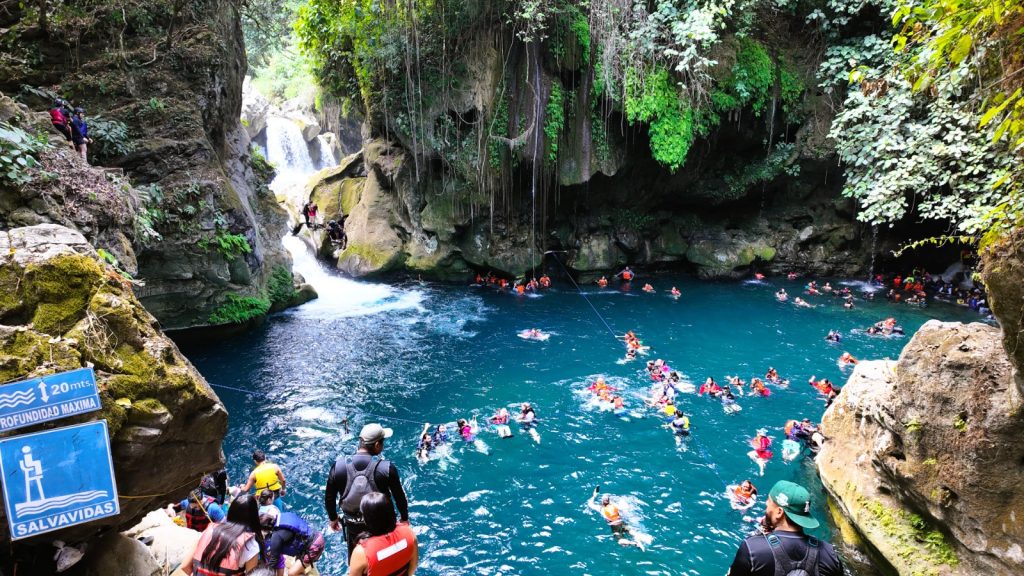 Este paraje destaca por su impresionante “Poza Azul”, donde el agua cristalina emerge entre formaciones rocosas y vegetación selvática, creando un espectáculo visual que cautiva a quienes lo visitan. La experiencia combina aventura y contemplación, consolidándose como un espacio ideal para el descanso, en sintonía con el cambio que se vive y se siente en la proyección turística del estado.