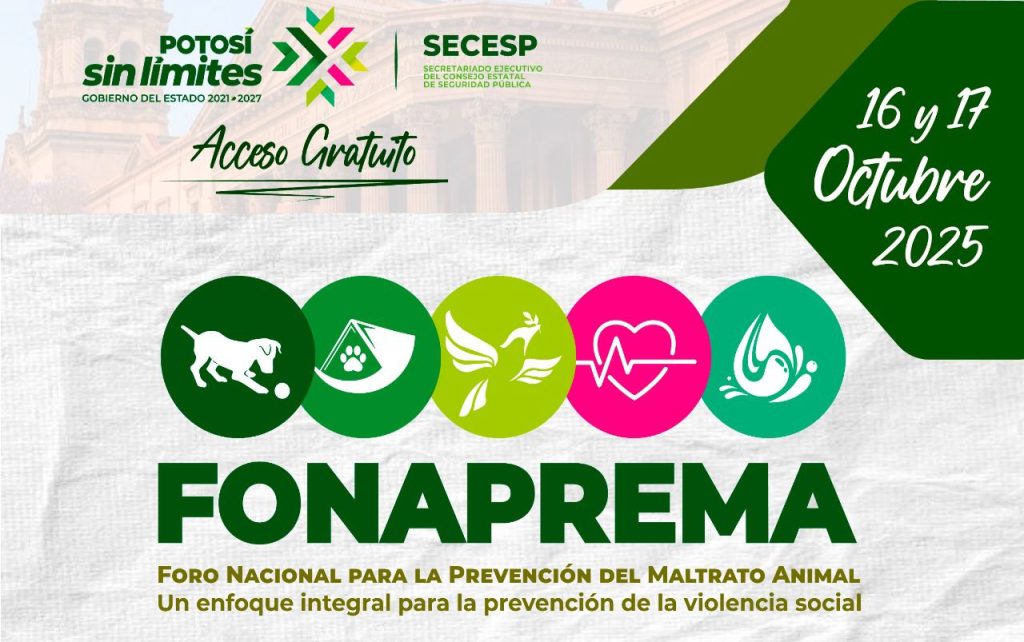 El foro se llevará a cabo los días 16 y 17 de octubre en la Universidad Politécnica de San Luis Potosí, con entrada gratuita y registro previo en http://fonaprema.littsw.com. Participarán expertas y expertos como Lucía Gabriela Rosales, Martín Dávila, Angélica Hernández y Esaú Monsiváis, quienes abordarán temas clave como la salud mental, el enfoque “Una sola salud” y la valoración clínica del animal maltratado.