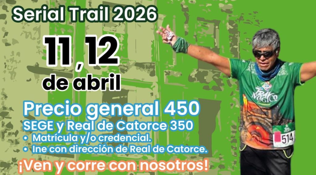 Gracias al apoyo sin límites del gobernador Ricardo Gallardo Cardona para promover el deporte, el Instituto Potosino de Cultura Física y Deporte (Inpode) tiene todo listo para que el 11 y 12 de abril el Pueblo Mágico de Real de Catorce reciba la primera fecha del Serial Trail Mágico 2026. Este evento reunirá a atletas locales, nacionales e internacionales, brindando una experiencia completa que fomenta la actividad física, el turismo deportivo y la convivencia en escenarios naturales únicos.