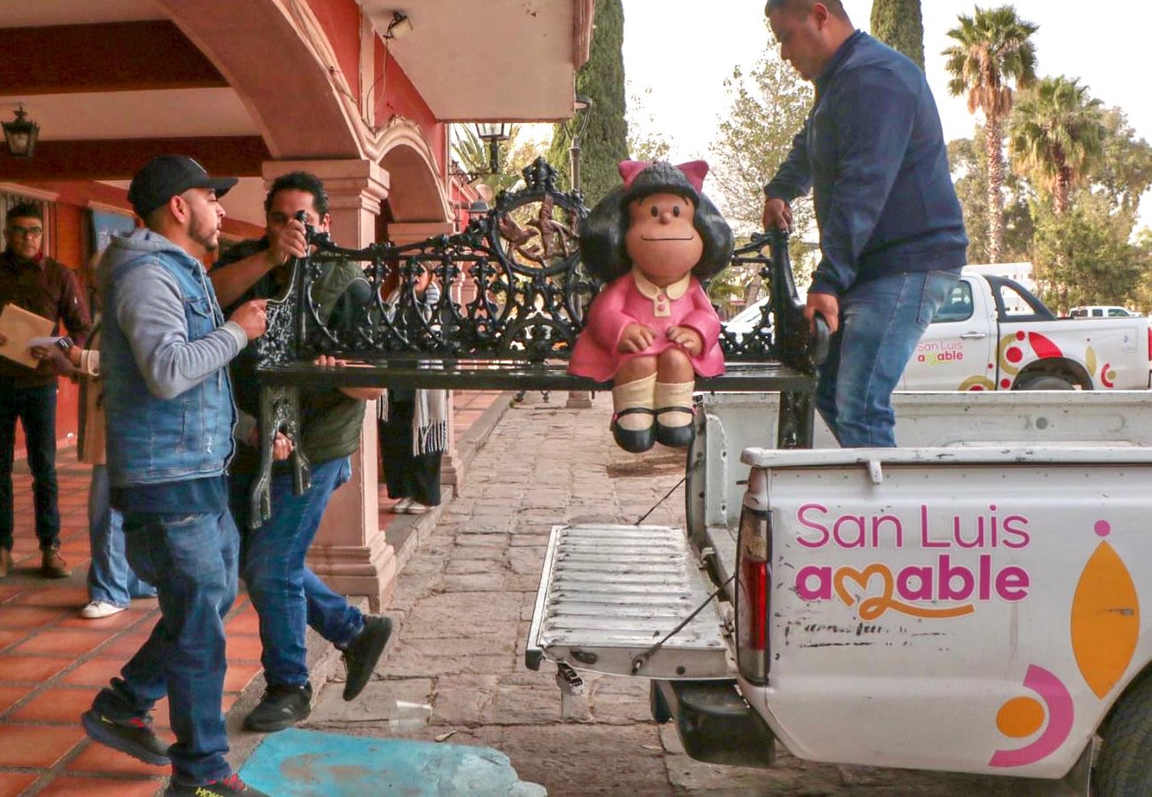 La visita forma parte del programa Mafalda se va de paseo por San Luis Capital, una iniciativa cultural que inició su recorrido en la capital potosina el 30 de julio de 2025, y que busca acercar símbolos culturales de alcance internacional a las distintas zonas del municipio. La escultura fue realizada por el artista argentino Pablo Irrgang, con el aval directo del creador del personaje, Joaquín Salvador Lavado, Quino, fallecido en 2020.