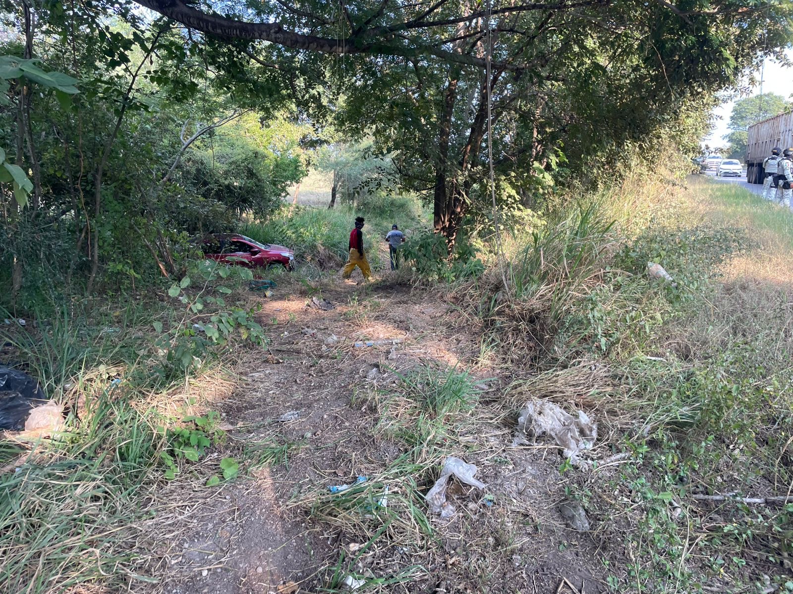 Auto familiar termina entre la maleza tras accidente en la Valles-Tampico