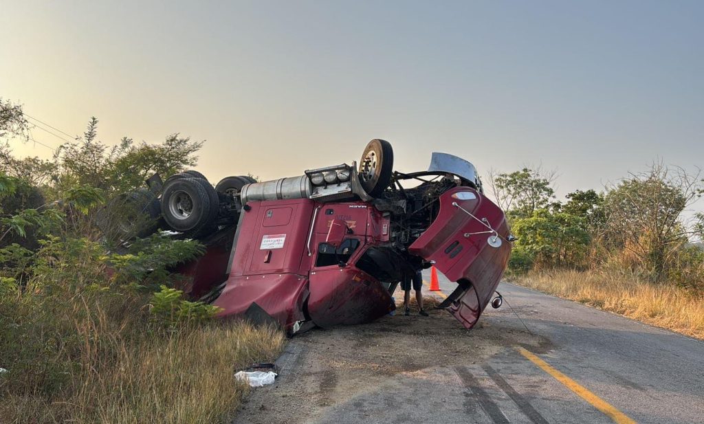 Un tractocamión que transportaba melaza terminó volcado la madrugada de este sábado sobre la carretera Valles-Mante, generando intensa movilización de corporaciones de auxilio y autoridades federales.