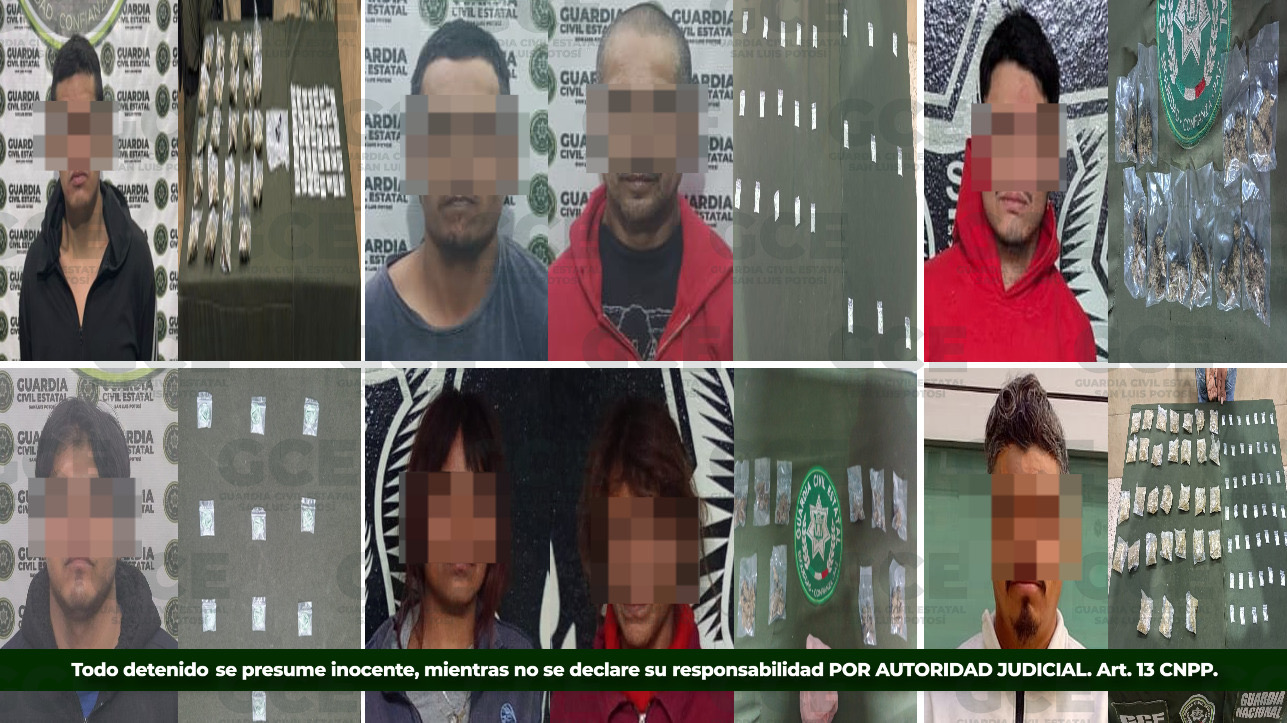 Aseguran a ocho presuntos narcomenudistas en distintos operativos en SLP