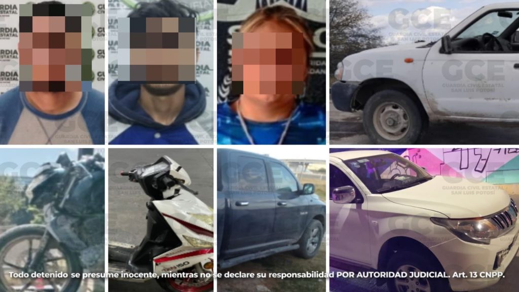 La División Caminos de la GCE, aseguró un automotor marca Mitsubishi, modelo 2018, en el Barrio de San Juan de Guadalupe. La unidad tenía reporte de robo en el mismo sector. Por último, en el municipio de Moctezuma, una camioneta marca Nissan, línea Estacas, se aseguró en la carretera federal 63. El vehículo tenía reporte de robo en la capital potosina.
