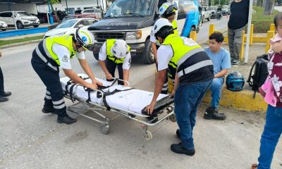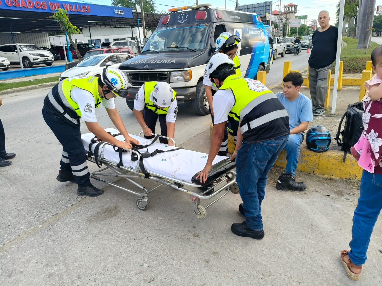 Camioneta provoca caída de motociclista repartidor en el bulevar México-Laredo