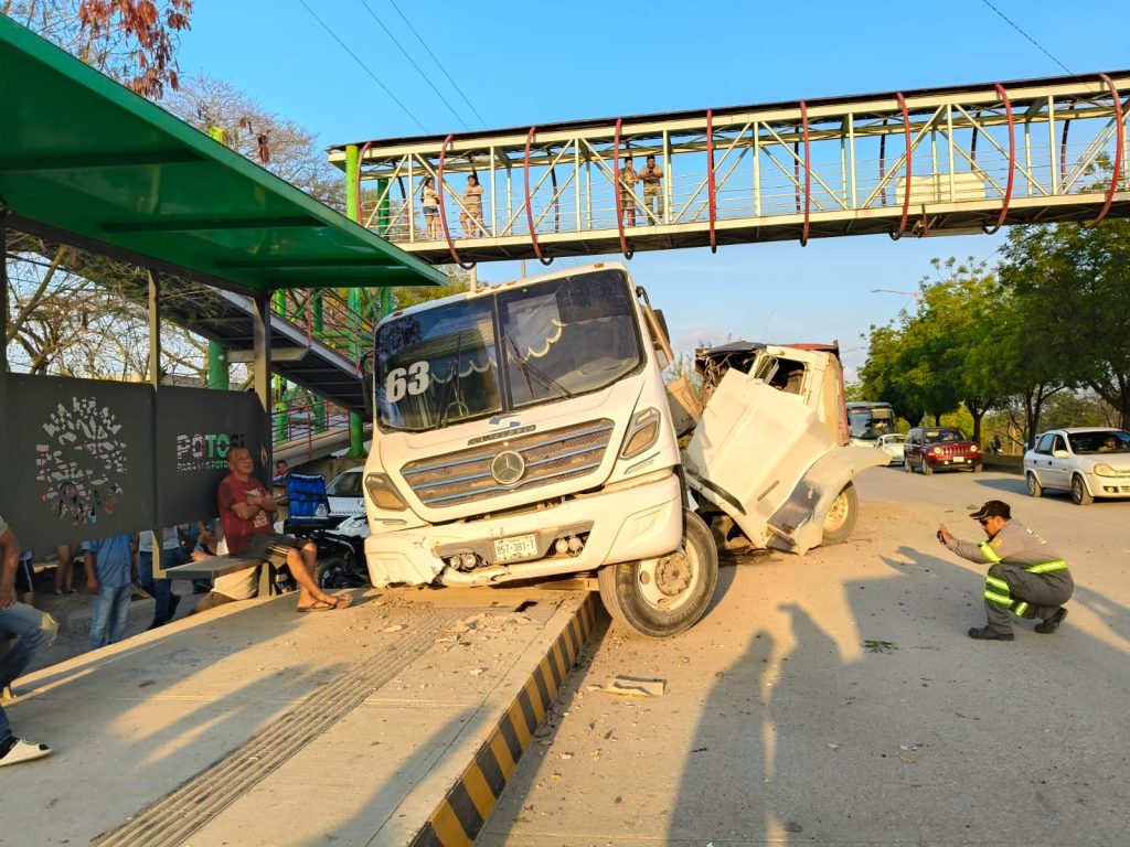 De acuerdo con testigos, el conductor de un torton marca Kenworth, color blanco y sin carga, circulaba con dirección hacia la zona centro cuando, repentinamente, se desvió hacia su derecha y terminó impactando la parte trasera del autobús urbano número 63, el cual estaba en servicio.