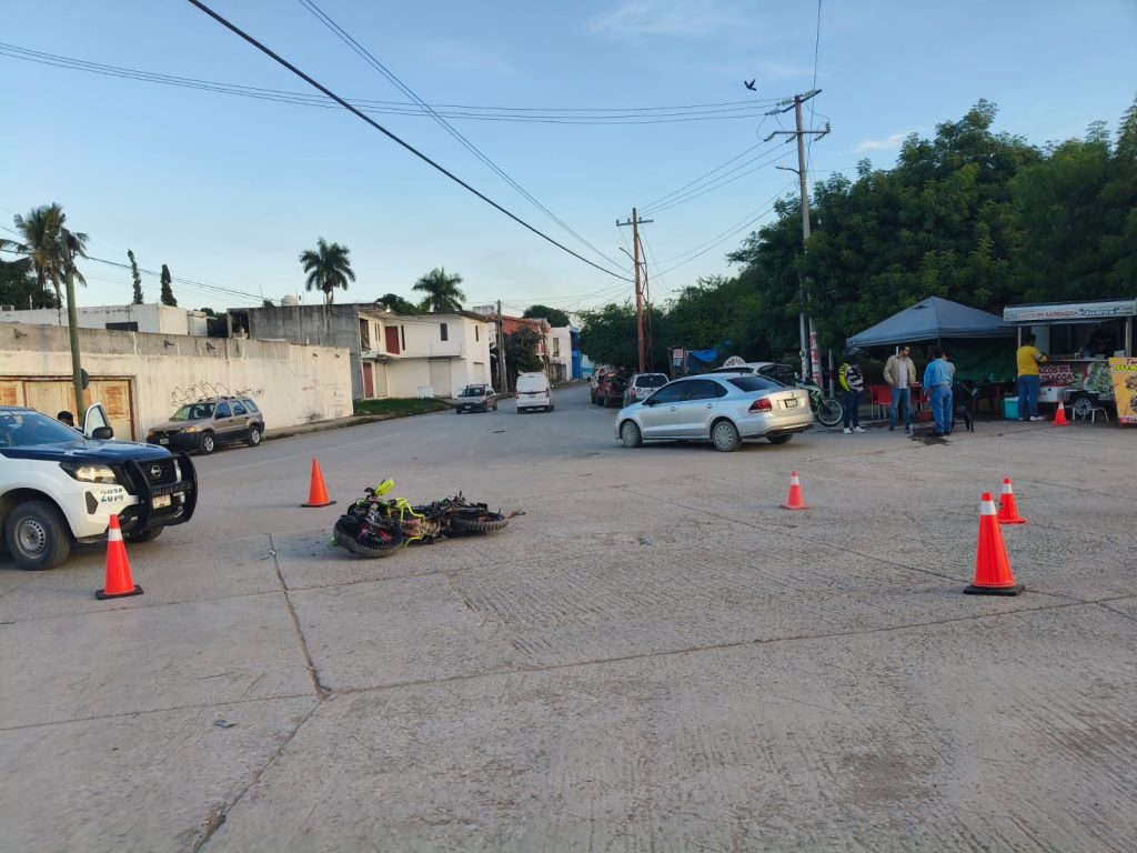 El accidente ocurrió la mañana de este martes, cuando una mujer conducía una camioneta Mazda gris por dicha avenida, en dirección a la zona de maquiladoras. Al llegar al cruce con Ponciano Arriaga, intentó girar hacia la colonia 20 de Noviembre sin percatarse de que un motociclista se aproximaba por el carril contrario.