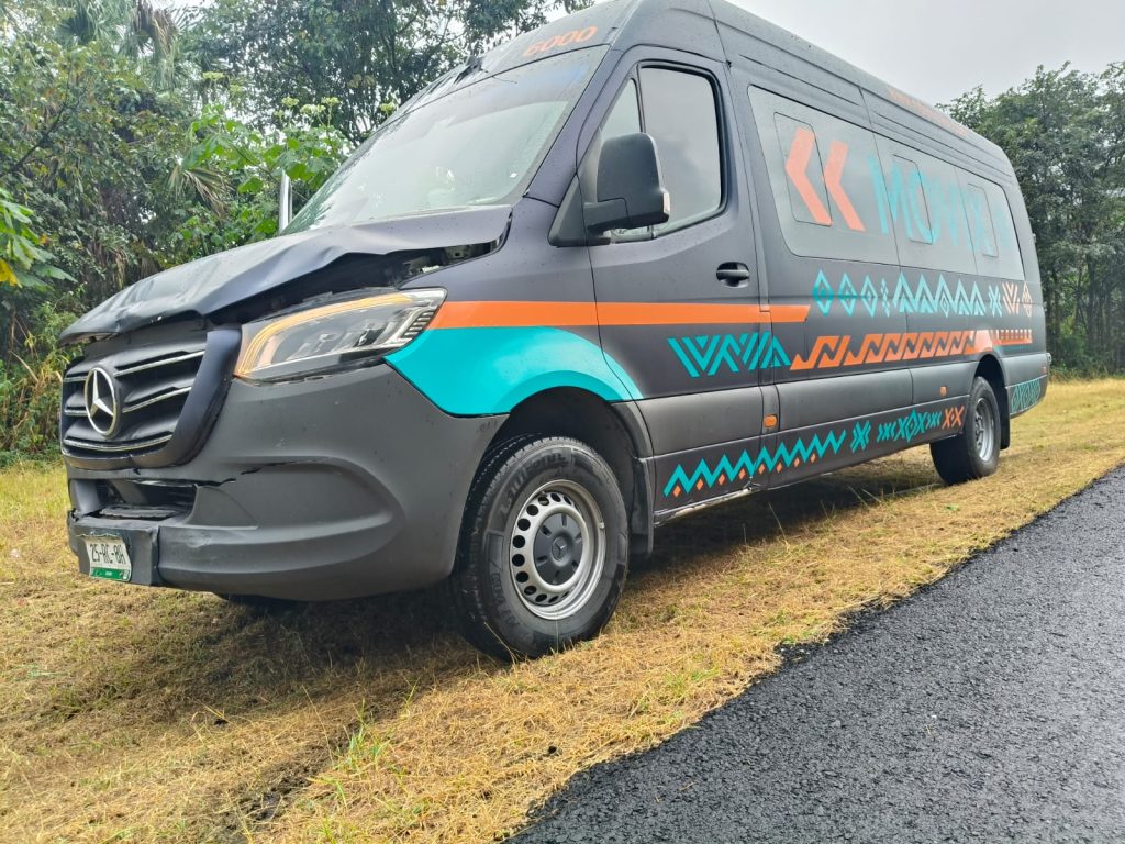 Una camioneta de transporte público chocó por alcance contra un tráiler cuando circulaba sobre la autopista Valles–Rayón, dejando únicamente daños materiales.