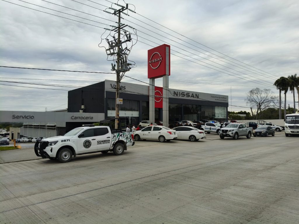 Una presunta llamada engañosa provocó la activación de la alarma y la movilización de fuerzas de seguridad en la agencia automotriz Nissan, ubicada en el bulevar México-Laredo, a la altura del fraccionamiento Lomas Poniente, durante las primeras horas de este lunes.