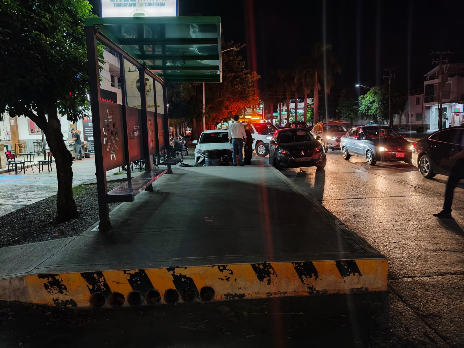 Auto termina incrustado en parador del Red Metro sobre el bulevar México-Laredo