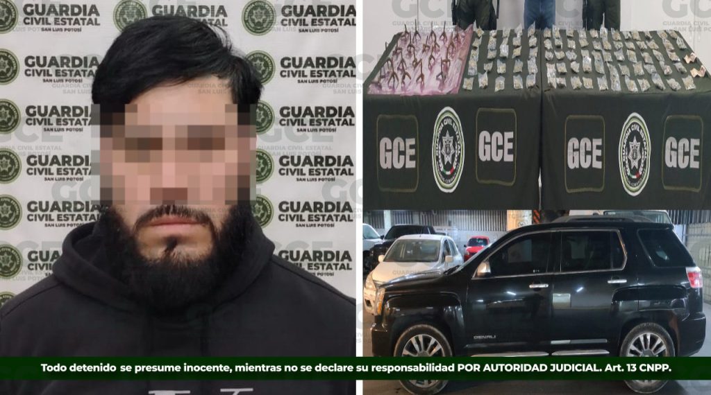 Agentes de la Guardia Civil Estatal (GCE) en Villa de Arista, detuvieron a Pedro “N” de 36 años, a quien se le aseguraran 82 dosis de marihuana, 20 artefactos “poncha llantas “, mil pesos en efectivo y una camioneta negra, mientras que en San Antonio, en la región Huasteca, en un hecho diferente, se capturó a José “N” de 39 años, con 586 litros de combustible, del que no acreditó la posesión legal.