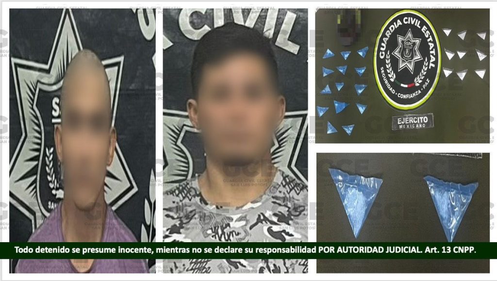 Durante los operativos de seguridad, desplegados en el municipio de Ciudad Valles, agentes de la GCE detuvieron a dos presuntos quienes se vinculan a actividades ilegales como la venta de estupefacientes. Por lo anterior, Daniel “N” de 26 años y Alfredo “N” de 28 años, fueron detenidos con 16 dosis de “cristal” y nueve de cocaína.
