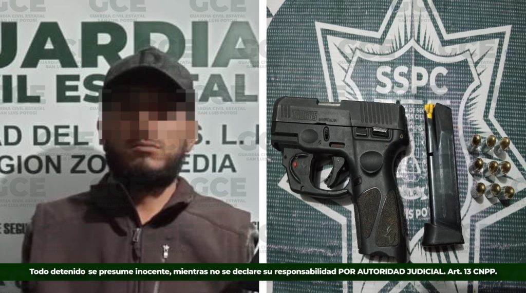 A través de operativos de seguridad e inteligencia, la GCE detuvo a Juan Pablo “N” de 35 años, luego de que fuera asegurado con un arma de fuego abastecida con un cargador con nueve cartuchos útiles, en la colonia Nuevo San Rafael, en el municipio de Ciudad del Maíz.