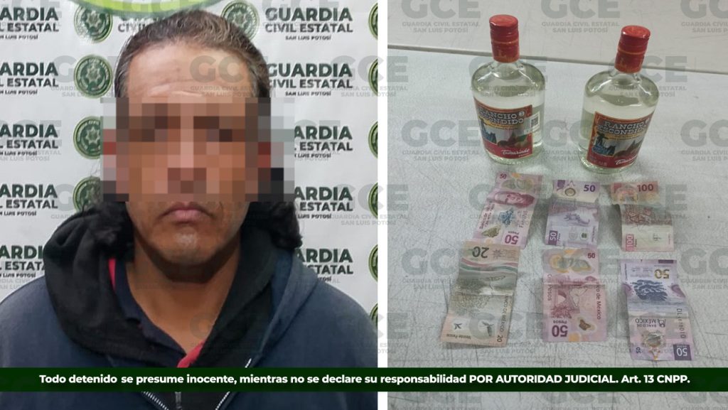 Los hechos tuvieron lugar en la colonia Plan Ponciano Arriaga, sitio a donde arribaron los elementos estatales y detuvieron a Juan “N” de 36 años, quien presuntamente trató de huir con dos botellas de licor y 320 pesos en efectivo.