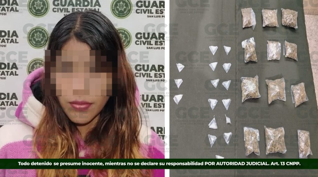 Derivado de las labores de la GCE, desplegadas en el operativo Caminante Abastos Seguro, una presunta vendedora de estupefacientes fue asegurada en la Central de Abastos. Se trata de Alexi “N” de 26 años, quien fue detenida con 12 bolsas que contenían marihuana, además de 13 dosis de “cristal” o metanfetamina y tres dosis de cocaína.