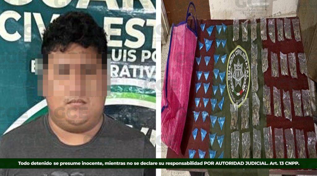 El detenido fue identificado como Fabricio “N” de 19 años, quien fue asegurado en posesión de diversas dosis de sustancias ilícitas, presuntamente destinadas para su distribución.