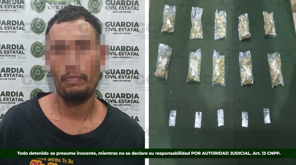 Al momento de la detención de José “N” de 32 años, se le decomisaron 10 bolsas con marihuana y cinco dosis de “cristal”. Lo anterior se llevó a cabo como resultado de un operativo coordinado en el municipio señalado, tras labores de investigación e inteligencia desarrolladas por nuestras fuerzas del orden.