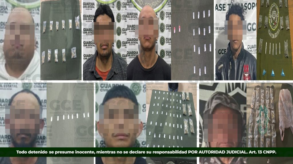 Agentes de la Guardia Civil Estatal en coordinación con Ejército mexicano, realizaron acciones operativas y de inteligencia en la capital potosina y los municipios de Villa de Zaragoza, Ahualulco, Tamasopo y Villa de la Paz, en donde siete presuntos fueron detenidos.