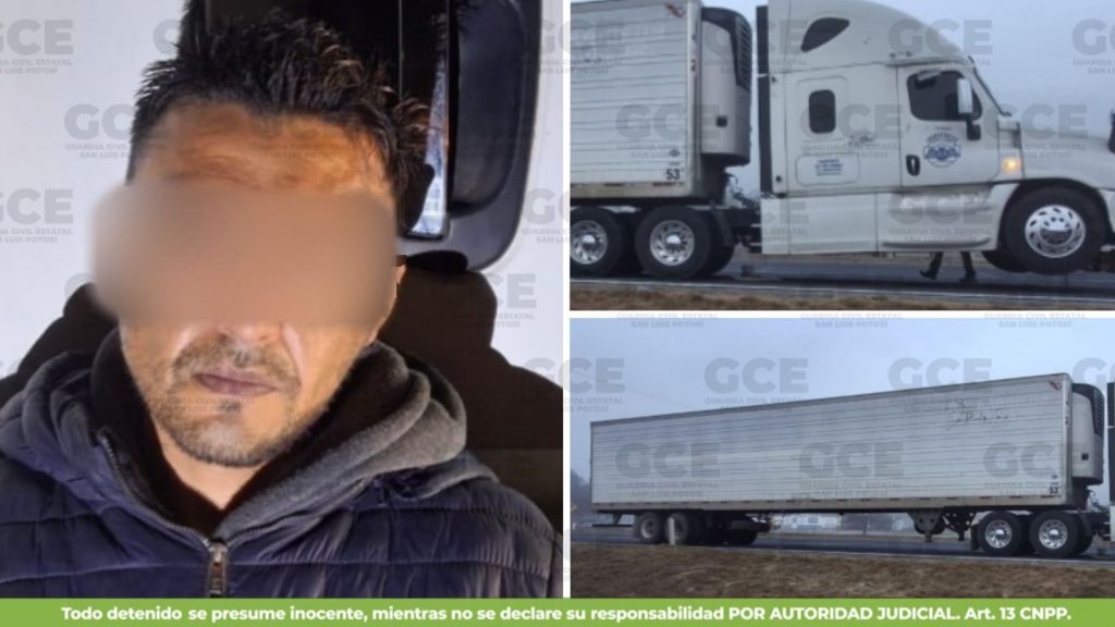 Derivado de los trabajos operativos de la División Caminos en coordinación con la Secretaría de Seguridad y Protección Ciudadana Federal, se detuvo a Genaro “N” de 36 años, luego de asegurarle un tractocamión modelo 2018, con placa sobrepuesta, en el municipio de Guadalcázar.