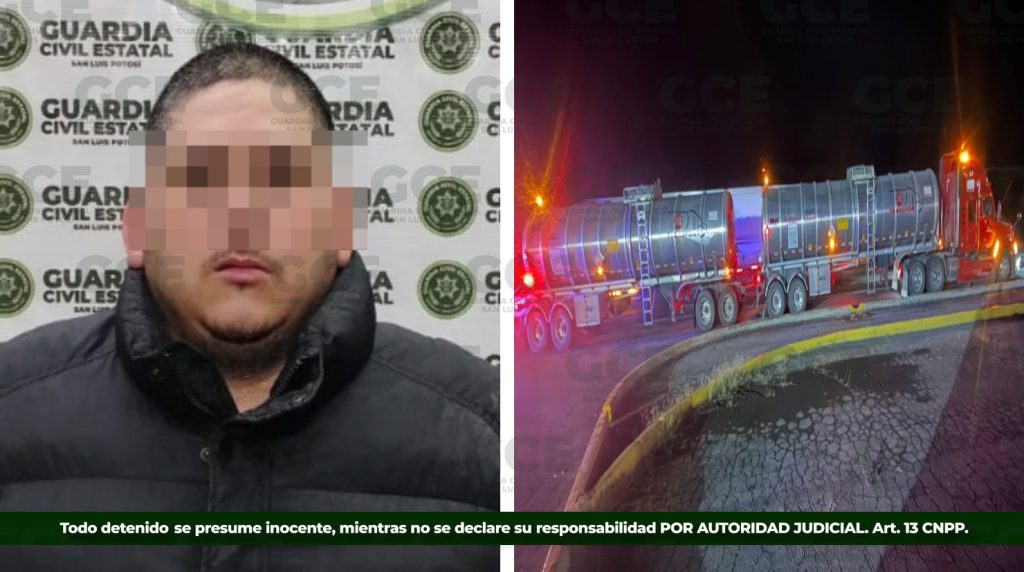 San Luis Potosí, S.L.P.- Derivado de operativos preventivos entre la División Caminos de la GCE y la SSPC Federal, un hombre fue detenido en el municipio de Guadalcázar, por el probable delito tráfico de hidrocarburos.