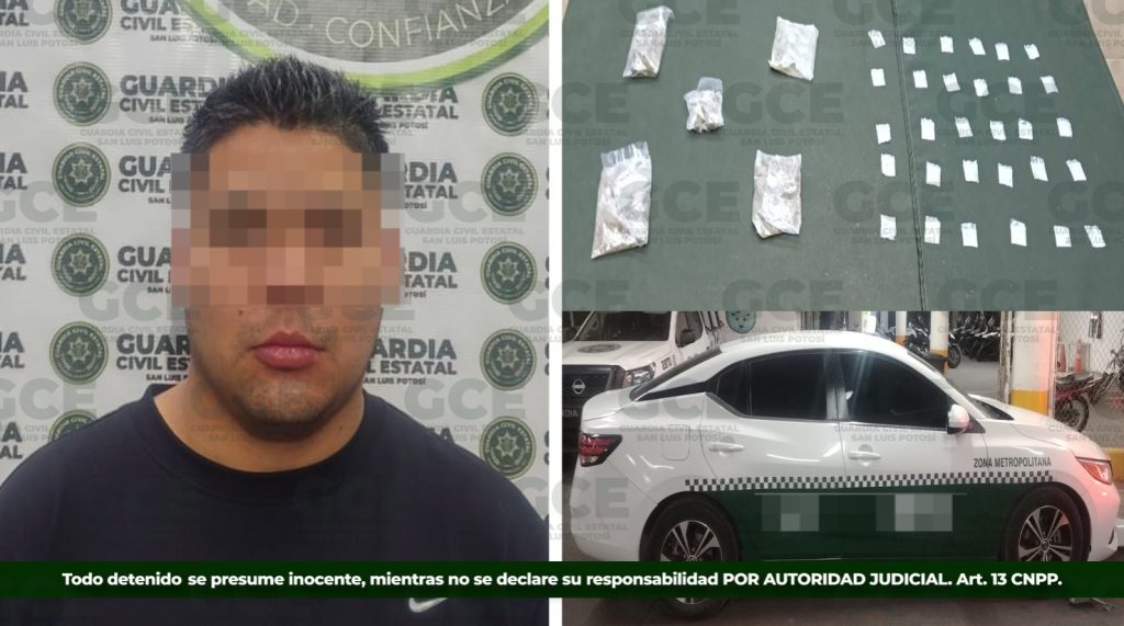 Como parte de las acciones permanentes de prevención, vigilancia y combate a los delitos contra la salud, la Guardia Civil del Estado llevó a cabo la detención de un hombre que utilizaba un taxi para presuntamente distribuir droga en la capital potosina.