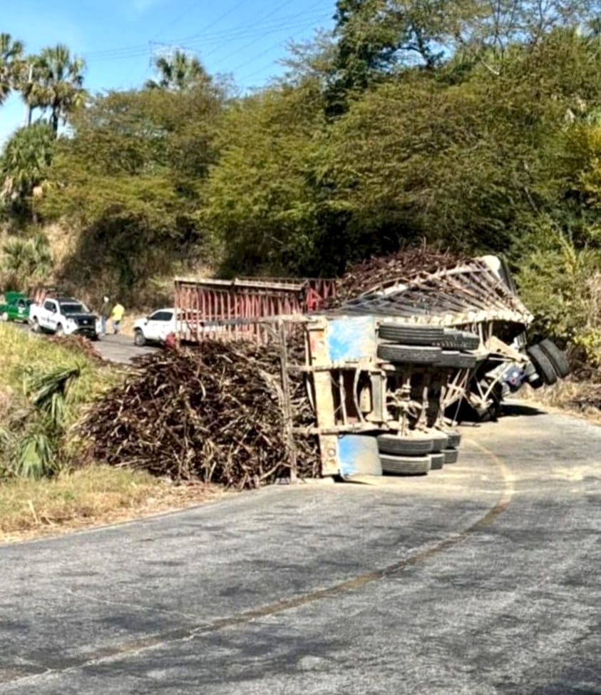 Trailero de Ciudad Valles sobrevive a aparatosa volcadura en carretera El Naranjo–Nuevo Morelos