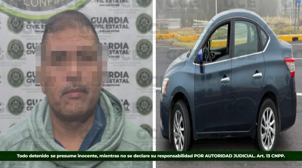 Mediante las labores preventivas de la Guardia Civil Estatal, se detuvo a una persona, por el probable delito de posesión de vehículo con reporte de robo, en el municipio de Villa de Reyes.
