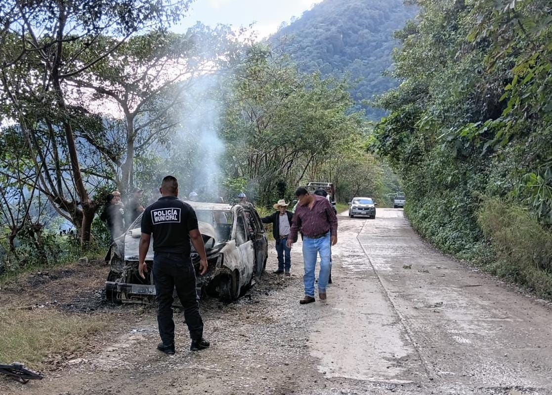 Arde vagoneta en carretera de Aquismón; conductor ileso