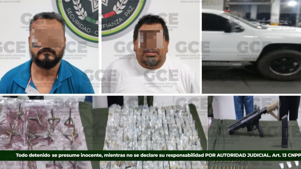 La Guardia Civil Estatal detuvo en Ciudad Valles a dos personas con más de 200 dosis de narcóticos, un arma de fuego y objetos ponchallantas