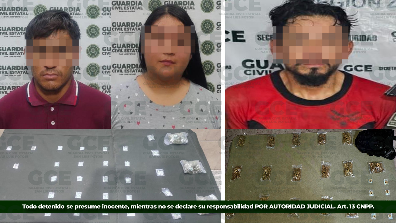 En operativos de seguridad detienen a tres presuntos vendedores de droga en SLP