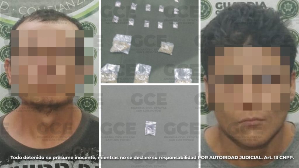 Efectivos de la GCE, desplegaron un operativo en coordinación con Ejército mexicano, en la colonia Las Mercedes, sitio donde resultaron detenidos Julio “N” de 44 años de edad y Juan “N” de 23 años, quien tiene antecedentes por probables delitos contra la salud. A los presuntos se les aseguraron 17 dosis de “cristal” y cinco bolsas con marihuana.