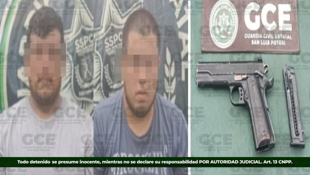 La Guardia Civil Estatal (GCE), detuvo a dos personas en el municipio de Aquismón por el probable delito de portación de arma de fuego.