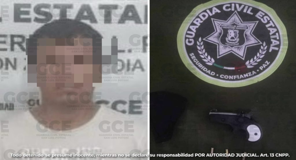 Agentes de la Guardia Civil Estatal, desplegaron un operativo de seguridad en el Barrio Llanitos, en el municipio de Ciudad Fernández, donde fue detenido Miguel “N” de 29 años, luego de que se le asegurara un arma de fuego, abastecida con tres cartuchos útiles, lo que derivó a su puesta a disposición ante la Fiscalía General de la República.