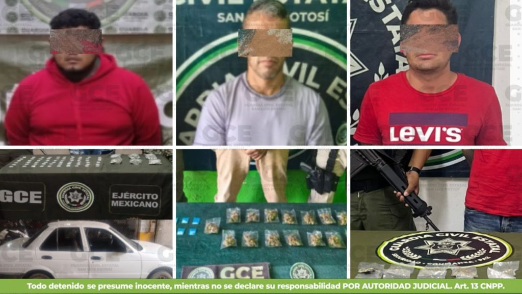 San Luis Potosí, S.L.P.- Agentes de la Guardia Civil Estatal en distintos operativos, detuvieron a seis presuntos distribuidores de estupefacientes en su modalidad de menudeo.
