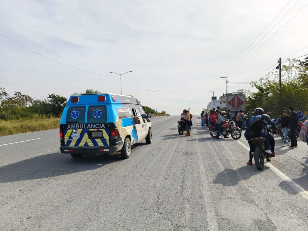El percance se registró a la altura del kilómetro 4, cerca de la gasolinera Los Grillitos, donde dos motocicletas Pulsar que circulaban en la parte media del contingente se impactaron, ocasionando que sus ocupantes cayeran abruptamente al pavimento.