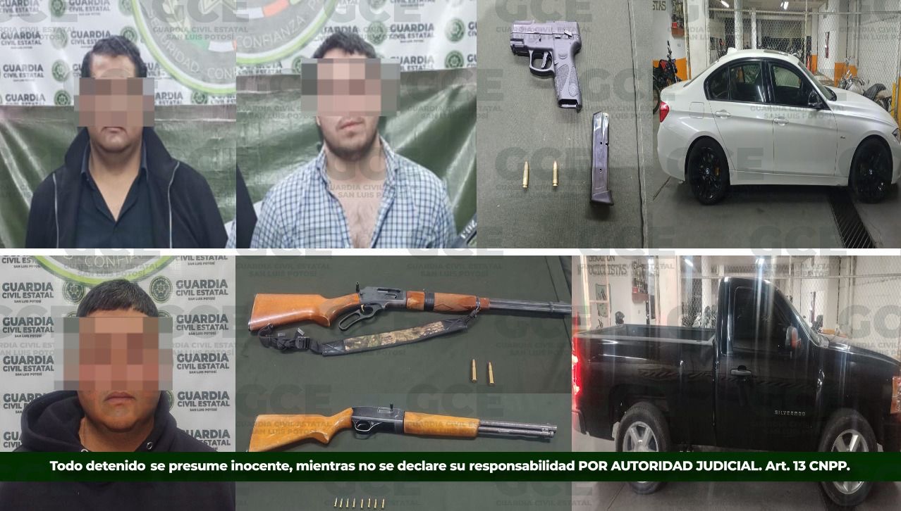Cuatro detenidos por portación de armas de fuego; un menor de 15 años de edad entre los detenidos