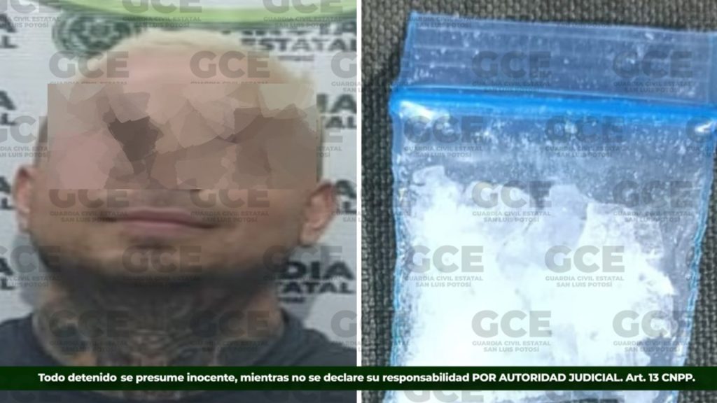 Como parte de las acciones permanentes de vigilancia y prevención del delito, la Guardia Civil Estatal (GCE) detuvo a José Alejandro “N”, de 27 años, a quien le fue asegurada una dosis de la droga conocida como “cristal”, y de acuerdo con labores de inteligencia, es considerado un objetivo criminal presuntamente vinculado con robos a tiendas de conveniencia y comercios en la zona.