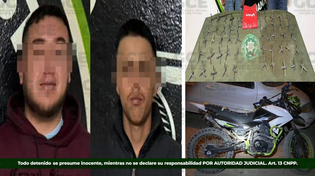 La Guardia Civil Estatal (GCE) detuvo a Cristian “N” de 19 años y Eduardo “N” de 24 años, por el presunto delito de posesión de arma prohibida en el municipio de Matehuala.